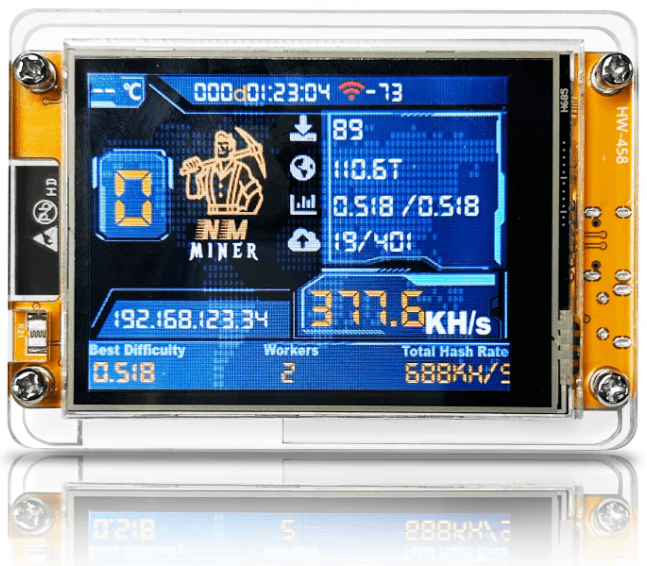 Full color LCD display shows your mining progress
